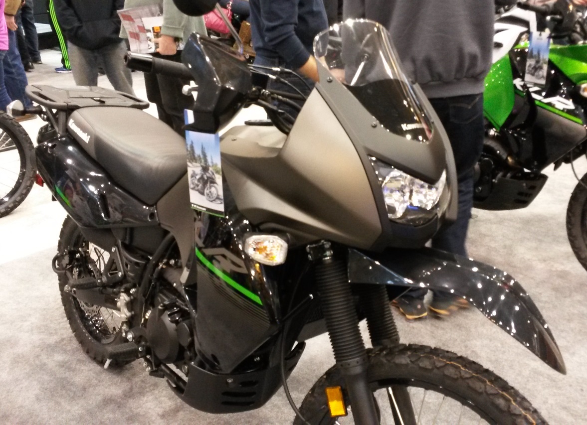 “Workhorse”; that’s pretty much what I think when I see the KLR 650. Until typing this, I knew Kawasaki has built the KLR for some time, but had no clue it first came out in 1987; needless to say, the resume is long, the posts on Adventure Rider about the “legendary” KLR are longer. If I grossly stereotype Japanese motorcycle companies: Honda means quality, Yamaha has everything, and Kawasaki knows dirt bikes; I assume the KLR is no different. If I take the booth rep’s comments in this context, the latest iterations of the KLR have been to give an otherwise qualified dirt bike better road manners. Without rambling on further, I climbed aboard contemplating what traveling the globe