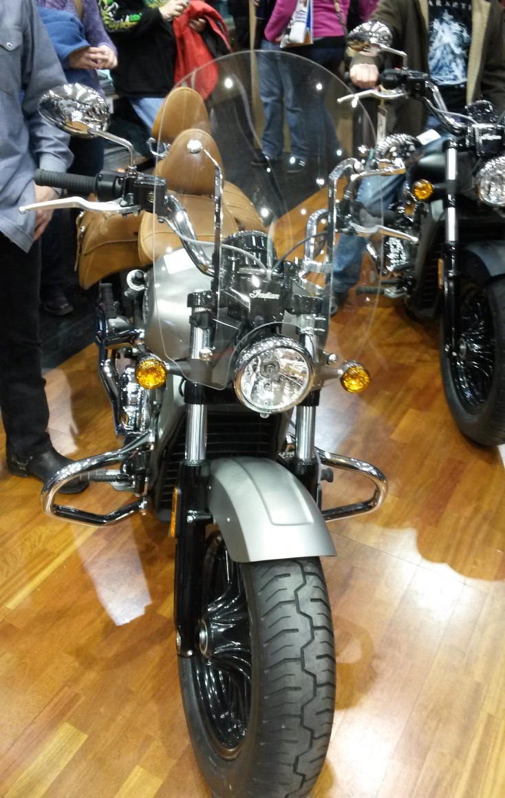 KTM brought their sweet connex setup again this year. Sorry, “Connex” is a slang term GI’s use when talking about “container transports” or “Ocean Containers”. KTM has a couple of orange steel ocean containers that open on the sides that they use for their booth display. They brought a big lineup again this year, but being a more street faring rider, I was mostly interested in the Adventure and Duke lineup. Because of the unorthodox setup, the line to get on the bikes was pretty considerable, so much so we actually moved on to the Indian booth and came back. I finally got to take a seat on the new 1290 Super Adventure. I have a friend with a 990 Adventure and I’m already very familiar with what a KTM is capable of. I’m a big fan, like Ducati, KTM takes a toquey V-twin, sheds weight, and adds suspension until they have a “race ready” bike. Without spouting off about how great I think KTM is, I found the 1290 to be ultra tall, so much so I would have to do a lot of research to figure out how to get it lowered; I doubt factory options would be sufficient for my 5’10” frame. I never did get to sit on the 690 Duke like I wanted to, but I’m still pretty convinced the 690 single would be an awesome bike to tool around town on. Along with Ducati, I would say KTM is on my bucket list for “motorcycles to own”… someday.