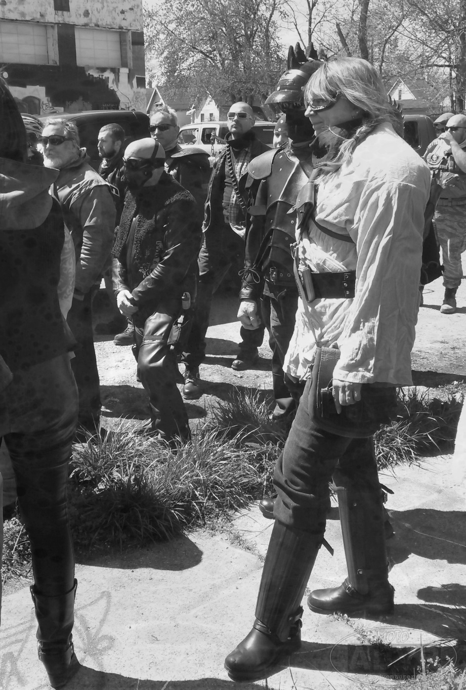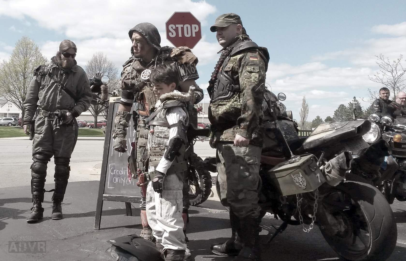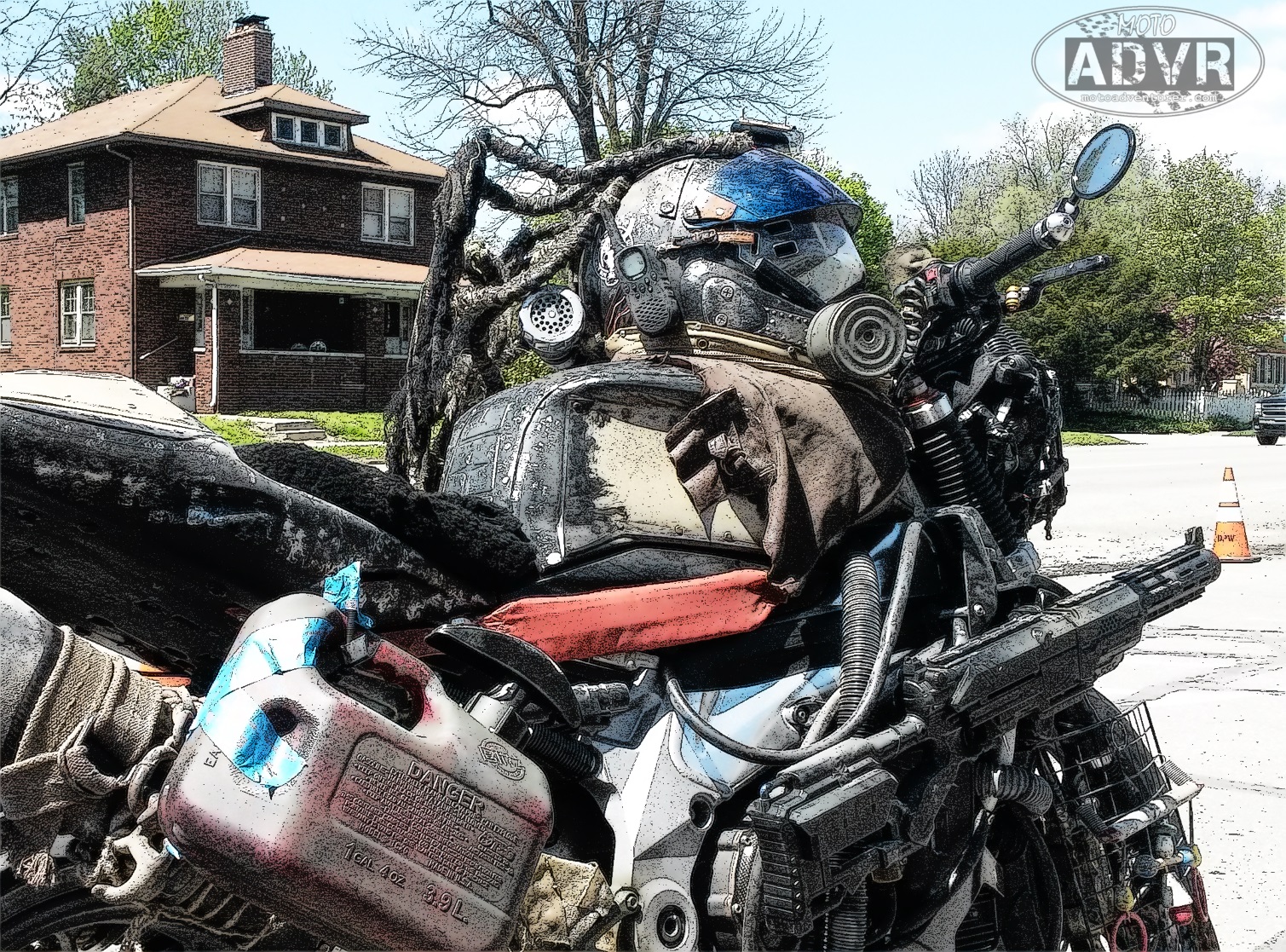 MadMax8I tend to be an advocate for safety gear and vigilance when riding a motorcycle. As such, I want to reiterate the safety concerns of events like this one. For folks new to riding, familiarity with your motorcycle, and your gear, including costume and items mounted to the motorcycle, is essential for participating in an event like this one. With over 100 riders from all spectrums of riding taste, discipline, and experience, it’s pretty much chaos weaving through Indianapolis traffic; considering the threat of a traffic accident, riders cannot afford “wardrobe malfunctions” that will only compound the danger. In my case, putting together a costume was that much more difficult because I didn’t want to sacrifice safety; it’s a 2 hour ride from Dayton to Indy; a lot can happen in 2 hours, especially when riding on Interstate 70.