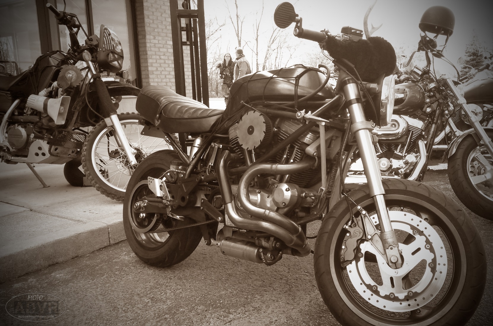 MadMax15I caught wind of the event last year through the local Triumph RAT Pack. The Dayton Chapter tends to be “in the know” about local motorcycle events like “Cincinnati Mods vs. Rockers”, Mid-Ohio Vintage Days, and other motorcycle meetups around the tristate. The event was basically a costume party, with an 80 mile ride around Indianapolis, including a few stops for photos and food along the way. Quite a few people took the time to get totally decked out in the Mad Max theme (including their bikes), some folks, like me, who were there just to see the carnage, while there were still many flavors in between.