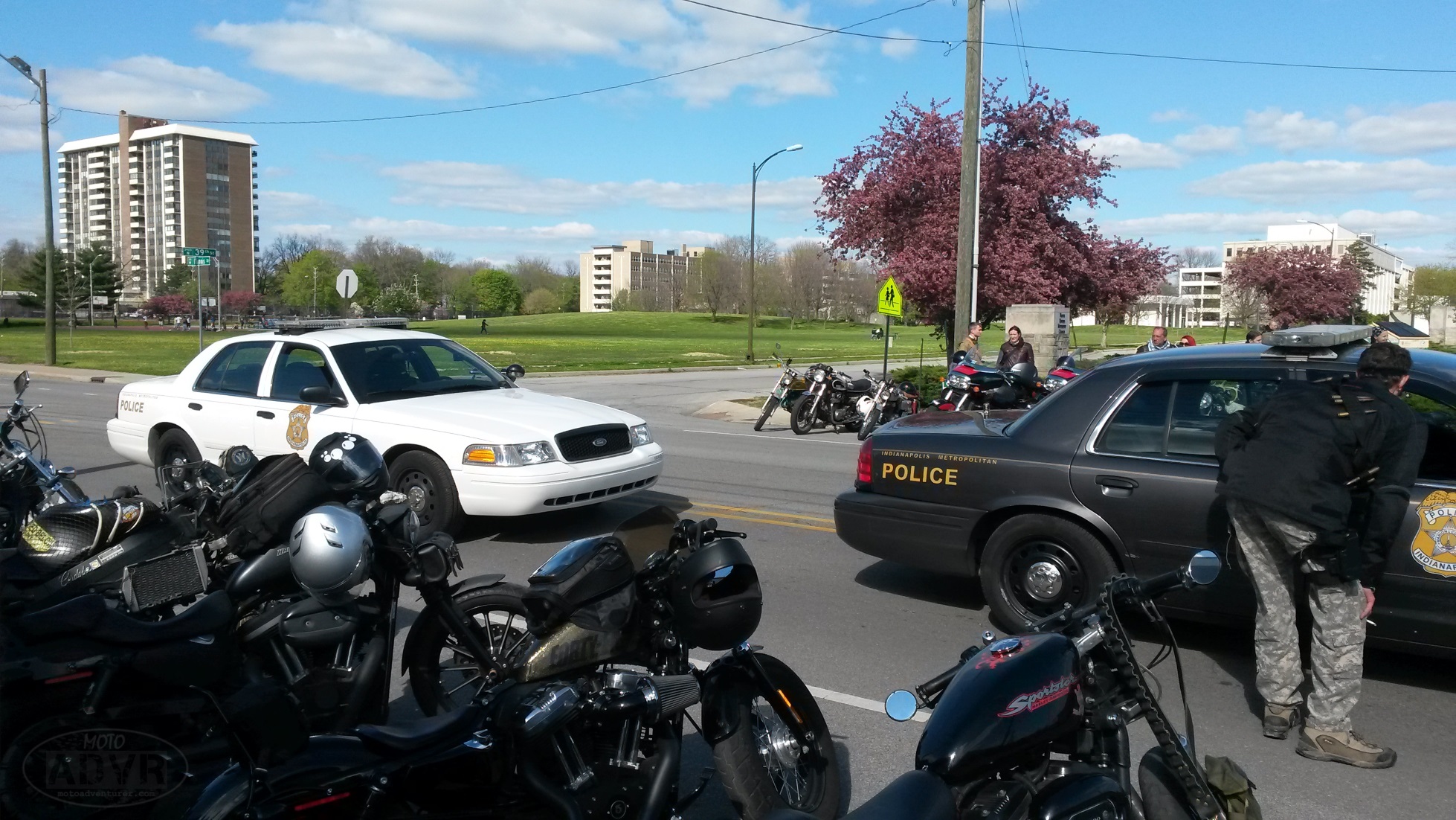 MadMax21While the Police did stop by the event, it was simply a misunderstanding. I mean, when random city folk witness 100 bikes rolling down the street with air soft guns, I don’t see how they might get the wrong idea? When someone informed the cops it was  just “Nerf”, Indy’s finest had a good laugh and told us to have a good time.