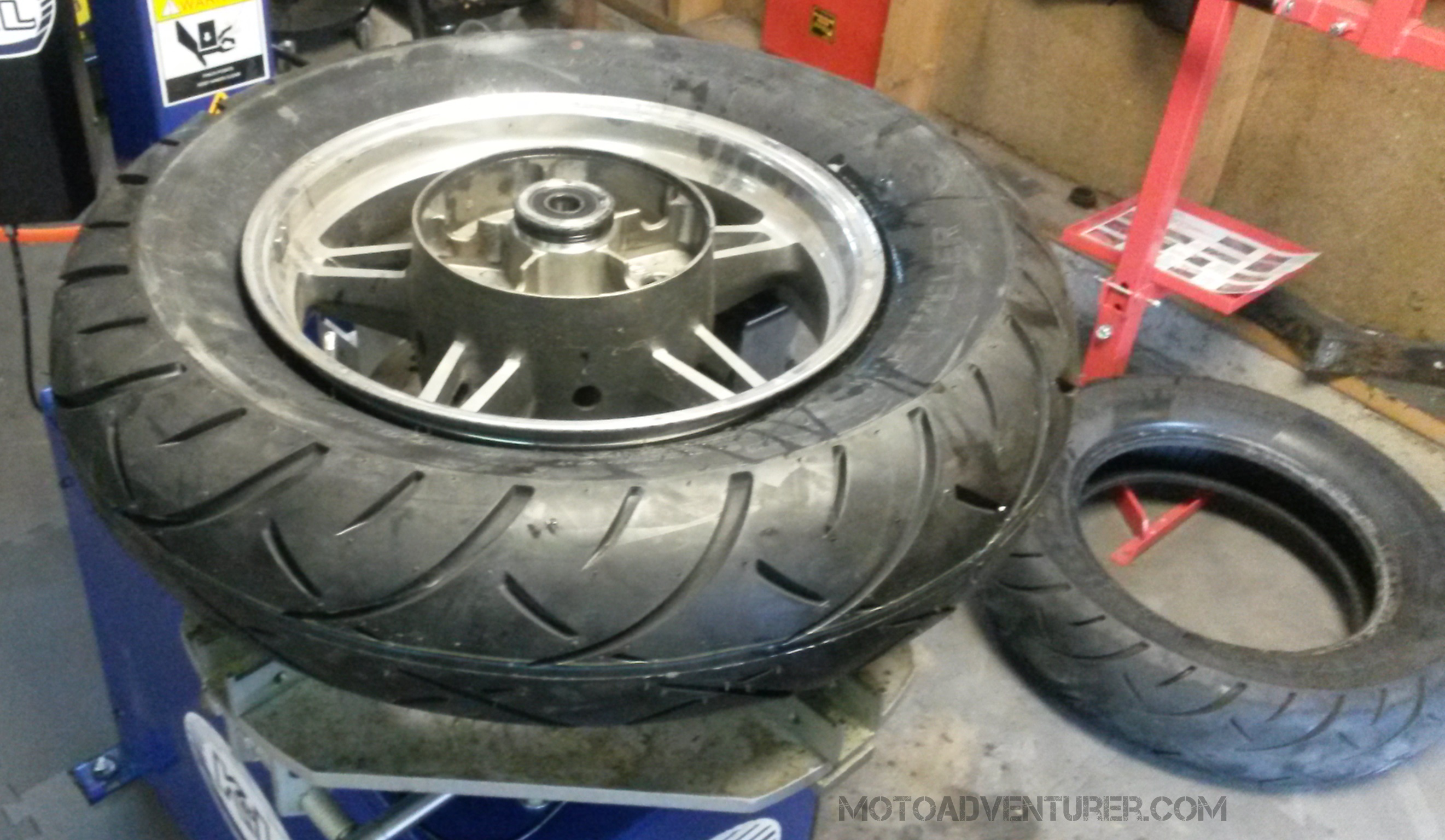 A few months back I wrote about changing out my front tire from the Metzeler ME 880 to the new ME 888 Marathon Ultra. This year’s trip to the Dragon Raid had a few casualties, my rear ME 888 that I mounted last year (just prior to my first Dragon Raid) was one of them. The trusty 888 took a licking and got me home, but it was time for retirement shortly thereafter. Like both of my ME 880 tires, the new 888 “ultras” have amazing tread life. This rear tire was the was the first I’ve replaced, but after 19,000 hard miles, it was time. Looking over the profile I still think that I could have got more miles if I didn’t spend so much time commuting to work on the freeway.