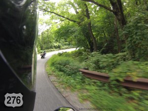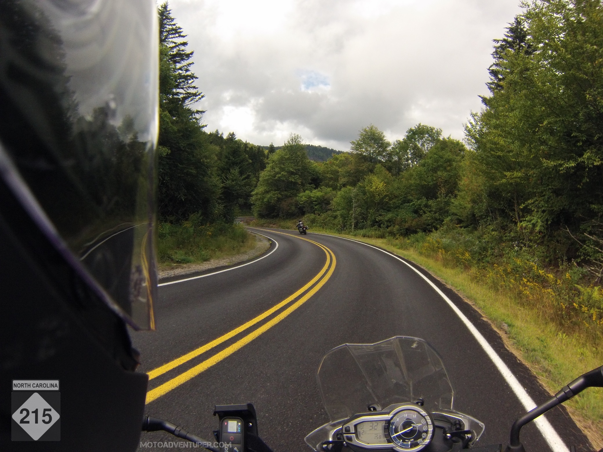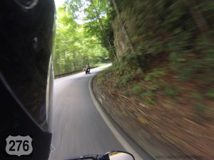 That aside, I appreciated the mountain scenery and daydreamed about the days that the old themed motels were still open. Once through the hustle and bustle of Maggie Valley, we turned south onto US-276 where the fun really started. Two-lane, similar to US-19 toward the bottom of the valley, the twisties on 276 steadily increased in frequency and difficulty as we neared the ridge line. The closer we got to the Blue Ridge Parkway (BRP) interchange, the curves and switchbacks really got interesting.