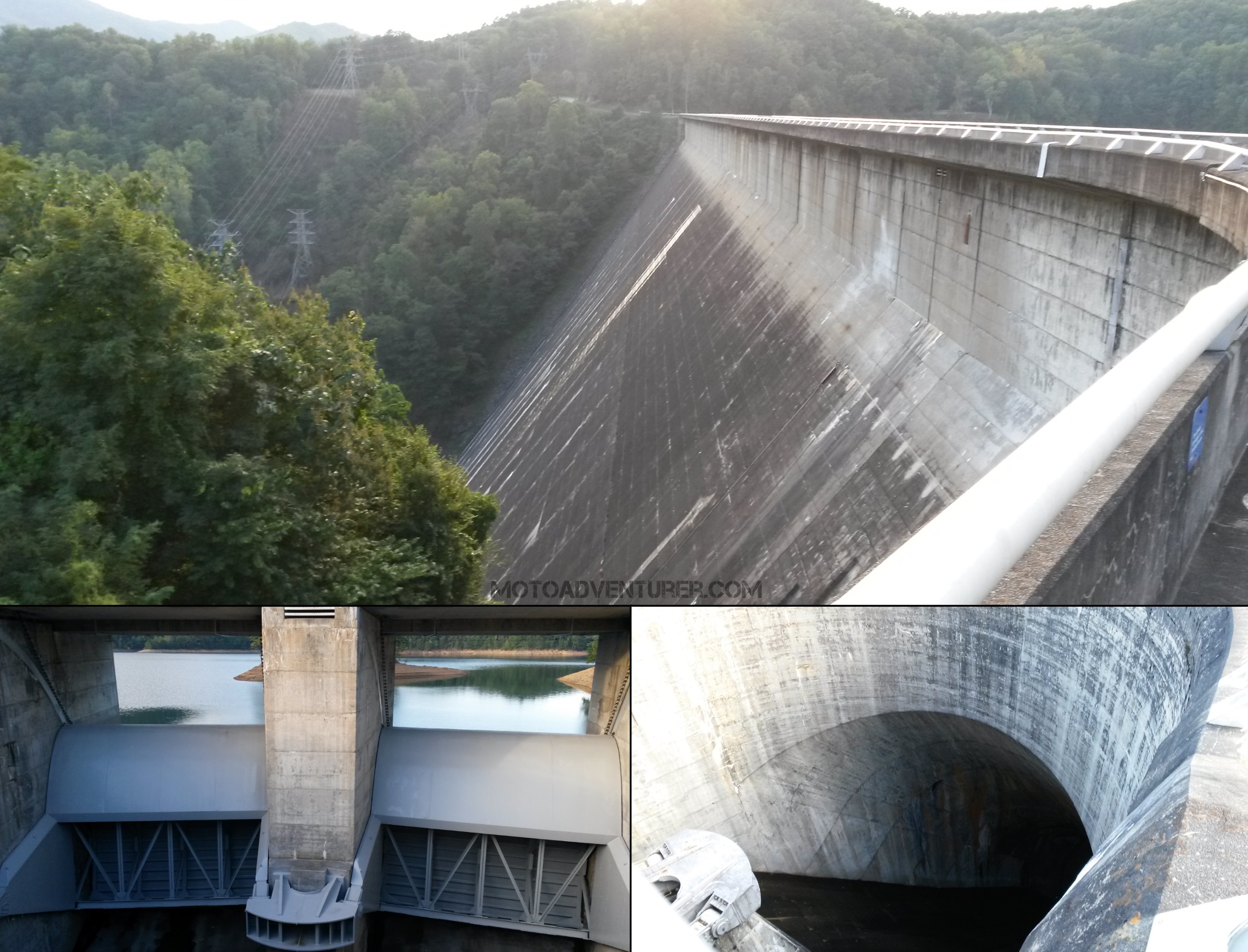 After a “down and back” across 129, I decided to stop and take some photos at the Fontana Dam on my way back to the lodge. Riding down this way last year I was aware of the local hydro-electric dam, but I had no idea that there were actually three in such close proximity. Next year I will probably try to stop and get photos at all three (Rumor is that “The Fugitive” was filmed at one of them). On another side note, I also didn’t realize that I parked my bike for a photo op right where the Appalachian Trail crosses the Dam. While not a motorcycle related item, the AT is another item on my Bucket List for this lifetime.