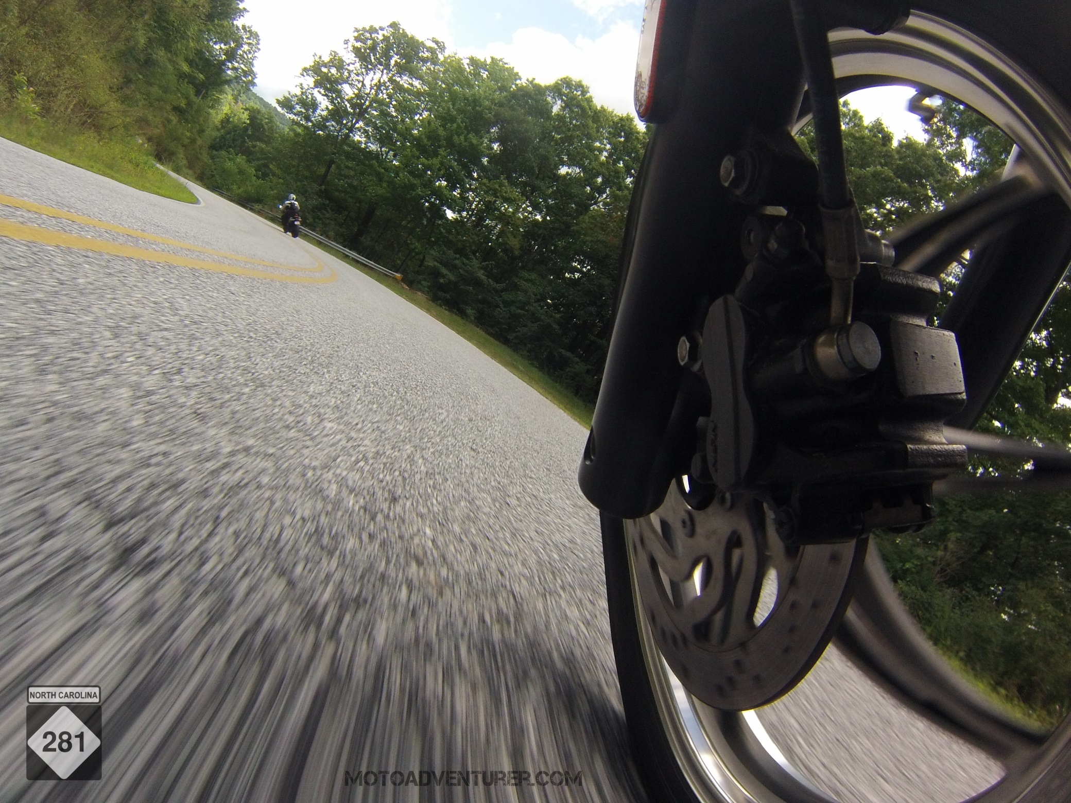 it’s actually nice to ride a good set curves in both directions. From the twisties of 276, Jon led us back over to the Blue Ridge Parkway (BRP) from Wagon Road Gap to US-74 at Balsam Gap. Admittedly, I think I enjoyed the BRP a bit more on the sporty Tiger, with its taller seat for better views, but it was somewhat reassuring to ride on my own, much more familiar, bike. Either way, writing this now, I still feel like the BRP was the best road I rode all week.