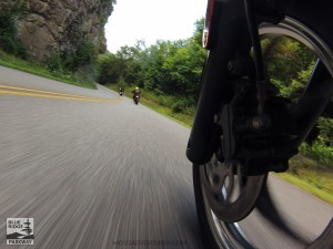 From the lodge we zipped across US-74 to Sylva to pick up North Carolina Route 107 (NC-107). If I hadn’t mentioned before, aside from high traffic hours (mostly on weekends) US-74 is actually a nice high-paced section of four-lane through the mountains; clipping along at 65 MPH, I’ve never leaned over that far on a four-lane highway before. That aside, I didn’t come to North Carolina to ride the four-lane, fortunately we picked up NC-107 in Brevard, and then onto a gnarly section of NC-281 toward Lake Toxaway. 281 was no joke, reminiscent of Wayah road, the tight downhill sections felt a lot faster considering the slightly better condition of the asphalt; chasing a handful of Triumph Triples and being pursued by a Multistrada, keeping up on a cruiser was somewhat of a chore.