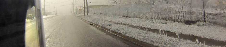 Almost the moment I crossed the Stanley Avenue bridge, the freeway was soaked, and I noticed the ever ominous “great white death” stuck to tree limbs and grass (while my wife probably won’t read this, she was probably right…). Slowing down, my destination was fortunately the next exit ahead; at this point, the road was wet, but the tires were still hooking up fine (not entirely sure how…). Coming down the off-ramp, water was starting to pool in various places along the roadway. Fortunately I’ve ridden this area quite a bit, including in the rain, so I was somewhat prepared for the less-than-ideal conditions. Turning at the light, the density of the snow accumulation started to concern me; it wasn’t true winter accumulation by any means, but when you’re on two wheels… any amount of frozen water is cause for concern.