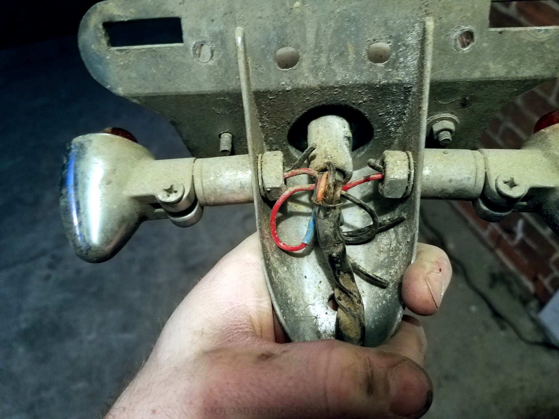 The next day I poked around on the bike for a bit in the cold, noticing that if I activated the left indicator, all four lights would blink. After unplugging the rear brake light assembly, the front lights functioned properly. I pulled the stock tail light assembly out of the basement and plugged it in to see how it functioned. Naturally everything worked fine, so I swapped out the aftermarket unit and put the bike back together.