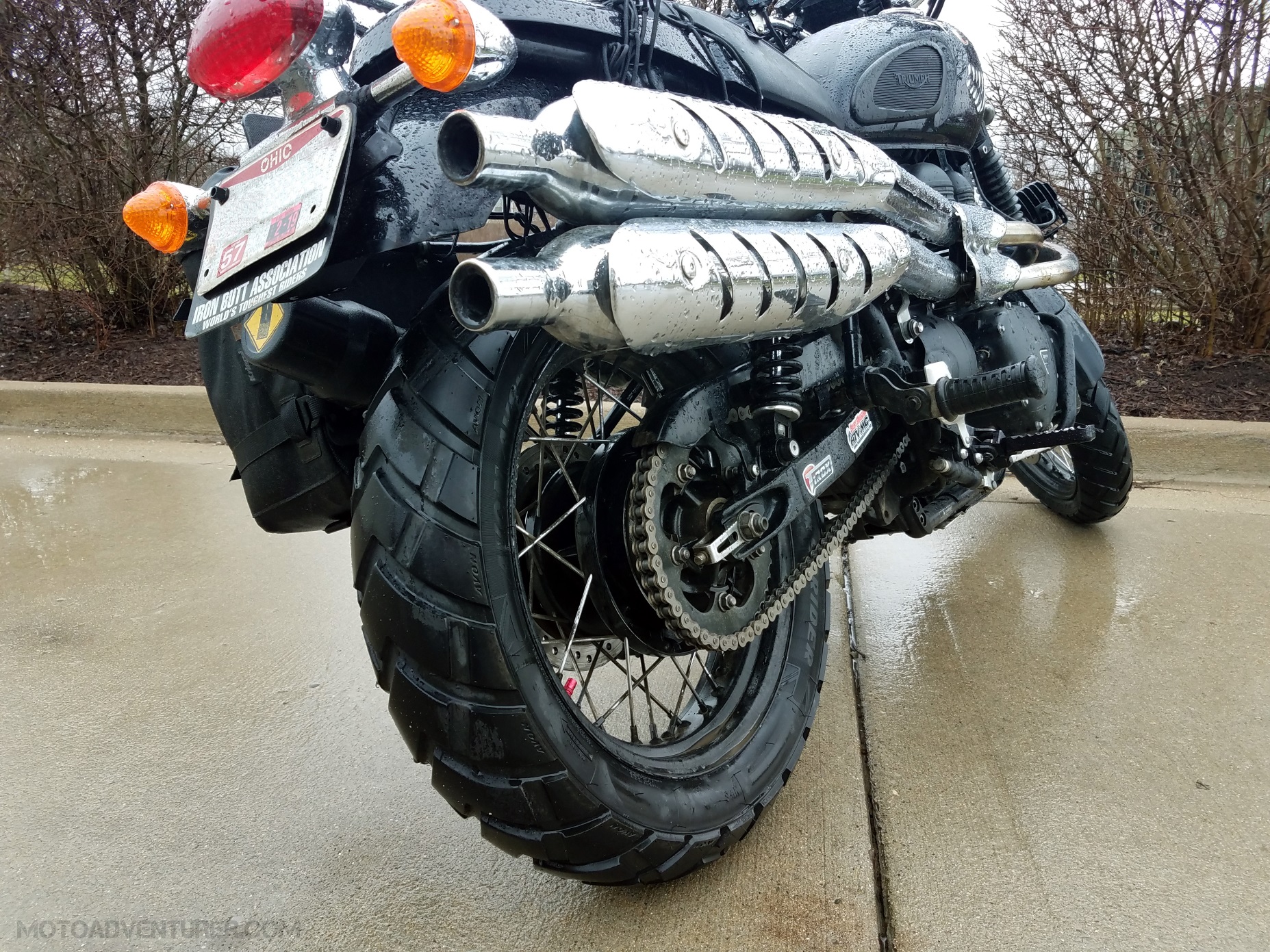 It should also be known that, like most dual sport tires, the Trekriders are constructed with single rubber compound. That in itself is not a bad thing, these tires are arguably the “stickiest” set of shoes I’ve ever put on the Scrambler. I mention this because long distance and ham-fisted riders will potentially put a hurting on that rear tire if they don’t practice a little throttle-discipline.
