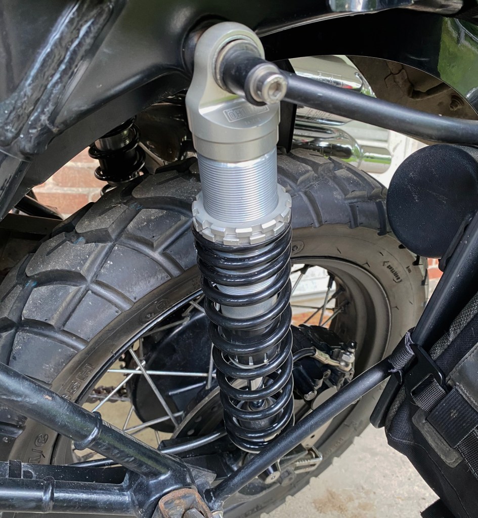 Somewhere during “3 months to slow the spread” a buddy sent me a screenshot of A&J Cycles selling a suspension kit for the 865 Scrambler. Considering I hadn’t driven my Jeep in months, the wife didn’t seem too upset about me spending saved gas money on a suspension upgrade I’d been putting off for years. I’d put something like 66,000 miles on the Hagon 2810 shocks and they were pretty much tapped at that point. For folks interested, I have advised elsewhere and will continue to say, I wouldn’t buy the 2810s again. They were a good shock for $375, but I would scrape together another $150 and buy a better set for your Triumph twin if given the opportunity.
