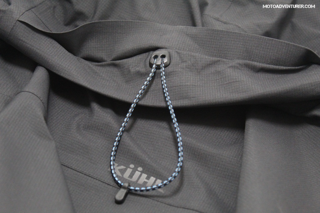 Contrasted with Frogg Toggs and motorcycle rubber suits, the One Shell is loaded with features and classy details. Handwarmer pockets are silky soft on the inside, also featuring water resistant zippers with garages. Inside the left breast of the jacket is a small convenience pocket for keys or a cell phone; held against the chest beneath the waterproof outer layer. There’s a second convenience pocket on the left shoulder; a spot I found best to stash my car keys, again kept safe behind a garaged water-resistant zipper. When it gets breezy, branded and precision cut Velcro wrist closures can be adjusted to keep the damp air out. Each side of the waist has a sewn in elastic drawstrings with some of the smallest and lightest adjusters I’ve seen. Similar to the Kuhl pants, brand logos are crisp and applied judiciously. Lastly, for runners or early morning explorers, zipper pulls, drawstrings, and nylon hooks are reflective to help drivers see you in the dark.