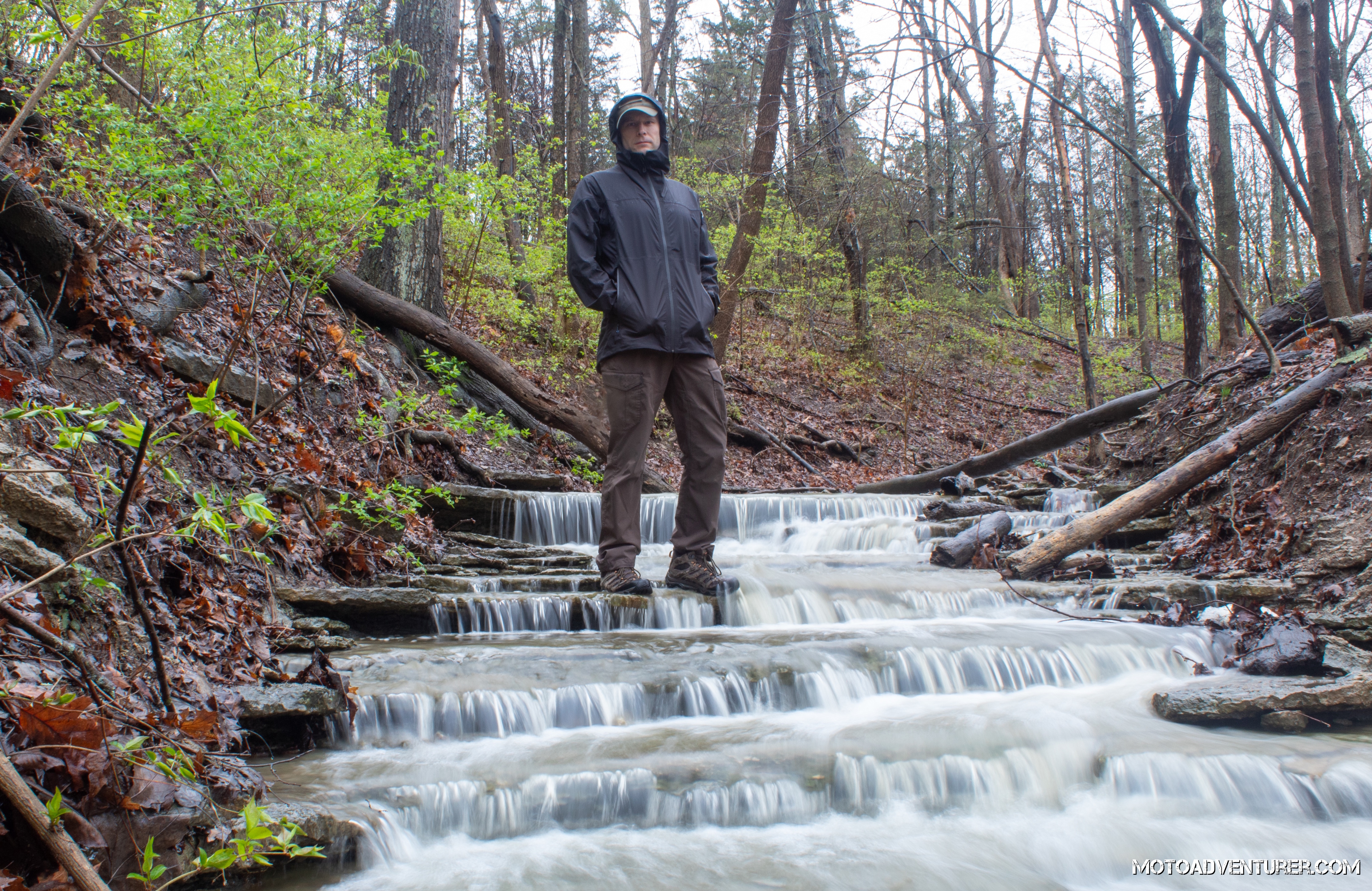 This is obviously a hiking jacket but considering how dry I stayed in the shower, I may pack it as a light rain jacket to wear under my riding jacket unless I’m expected a deluge.