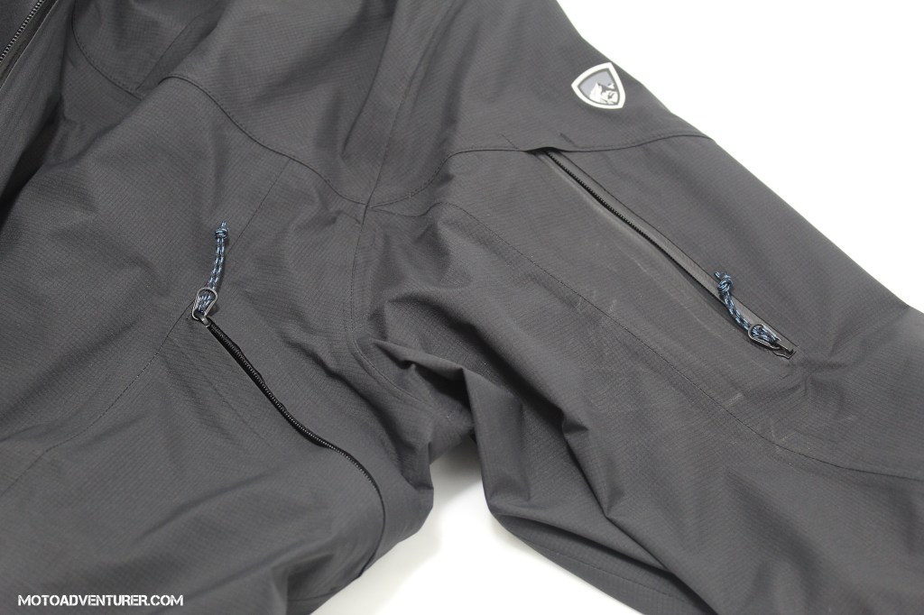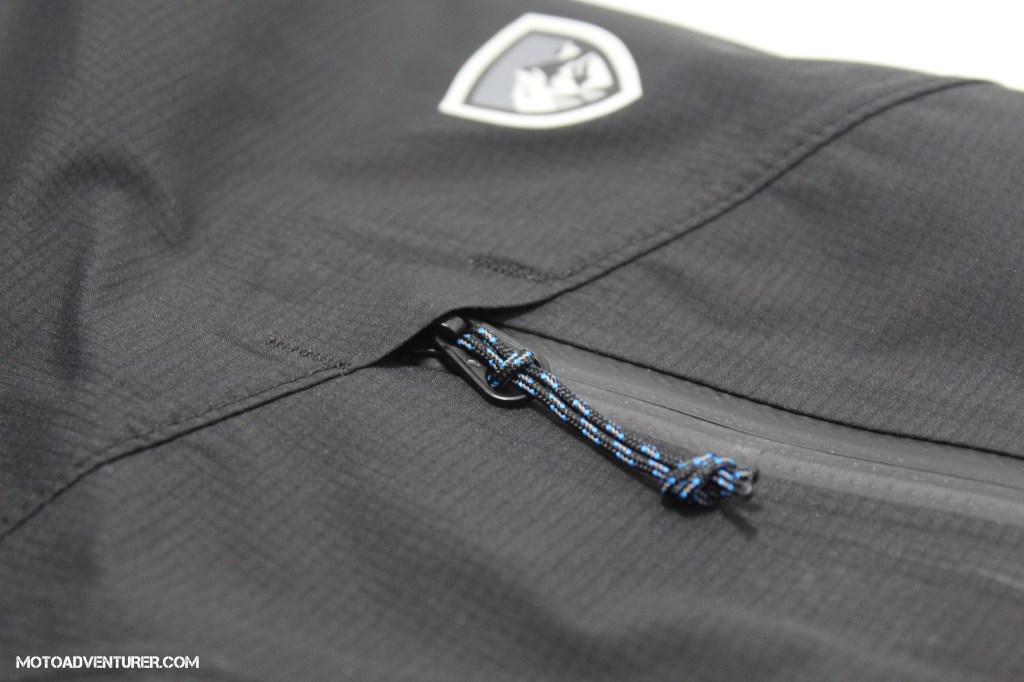 As an Army veteran and motorcyclist, I’ve worn no shortage of “rubber suits” in an attempt to stay warm and dry. Based on that experience, the extremely lightweight and breathable fabric of the One Shell was the first thing that stood out to me. Kuhl says the One Shell is manufactured from a 20-denier mini ripstop fabric with 3 layers of their trademarked “AERO” breathable waterproof membrane and weighs 96 grams per square meter (I unfortunately don’t own a scale smaller enough to test that). Like all waterproof gear that comes through my door, the One Shell received the same test treatment; put on the gear and jump in the shower. Despite standing under the constant flow, water failed to soak through the fabric to sneak through the zippers despite the direct spray.