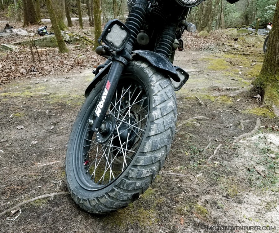Avon Trekrider Triumph Scrambler Forest front MotoADVR