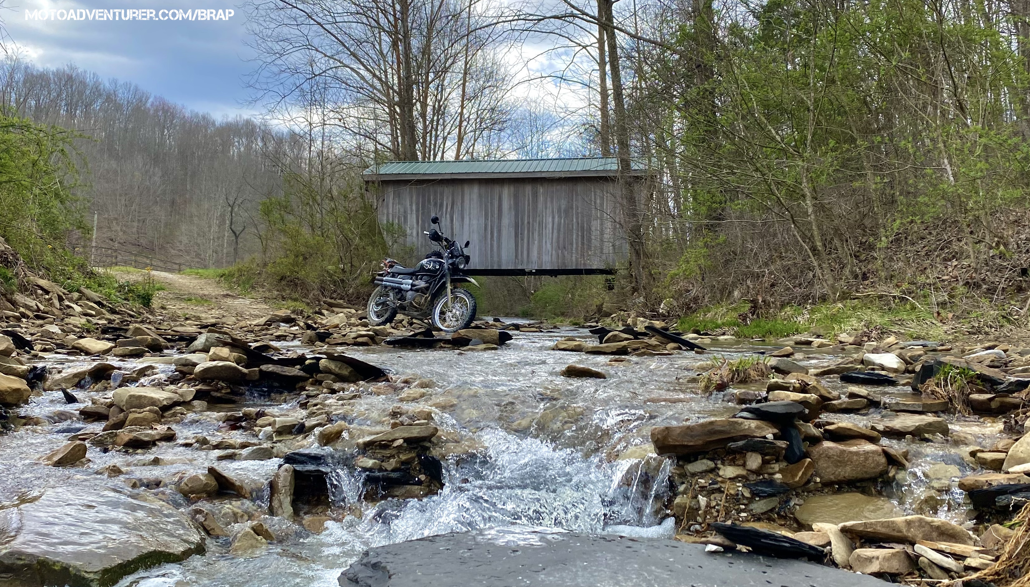 Section 6 starts at a Marathon Station in Counts Crossroads, Kentucky, just west of Grayson. This section of the BRAP weaves its way north up through some stellar pavement and onto gravel through Carter Caves, and then up to an endless series of remote hollers that mirror the experience in section 1. This section includes multiple photo opportunities, including the rock shelter along Tygart’s Creek, Lauren Iron Furnace, and Bennett’s Mill covered bridge. About midway through the route, there’s a final challenge section through Howe Hollow. This route finishes with a spectacular view of Portsmouth as the pavement descends to the Kentucky riverside on its way back to the Marathon station, where section 1 begins.