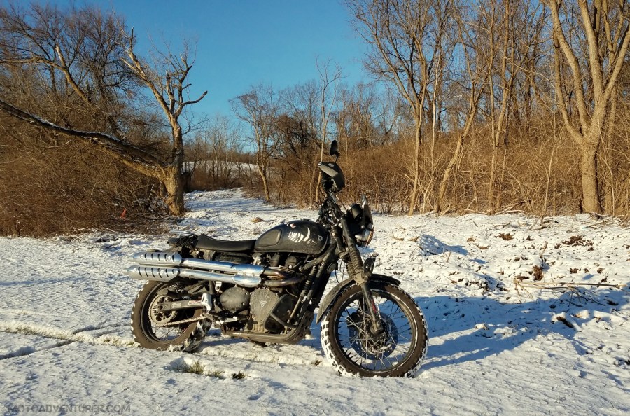 Christmas Day Snow Triumph Scrambler MotoADVR