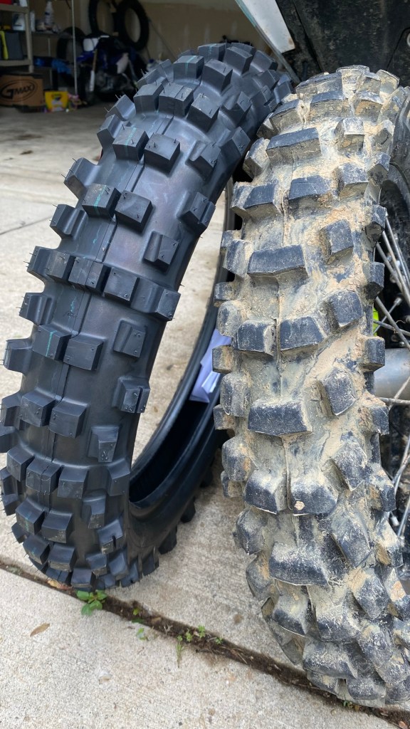 When discussing the Kentucky terrain conditions, Shinko recommended the 525, however, because of supply chain limitations at the time, they suggested I give the 520 Dual Compound tire a try. The Husqvarna’s manual calls for a 110/100-18 size rear tire, however, Shinko sent a 120/100-18. Long-time followers know, I have no qualms with trying various tire sizes, so this was a no-brainer for me. Moreover, I suspect a lot of folks run 120 width tires for trail and cross-country riding (more on that in a minute).