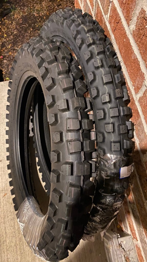 Again, I went back to look over Shinko’s offerings. Shinko sells the 244 and 804/805 tires, but I felt that neither of those DOT offerings would be ideal for a lightweight dual-sport and the copious mud and sand I see in the gorge. While not DOT approved, I landed on the Shinko 505 after seeing several friends run that tire at previous events. I was concerned the front knobs might not be firm enough to handle braking on pavement, but in the interest of “science” ordered the matching 504 anyway.